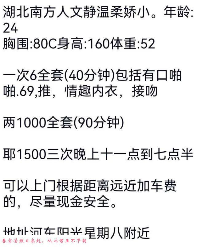 【特别注意】:凡是需要支付定金或路费的都是诈骗,再次提醒各位,一定不要先给钱!建议服务完后再给钱,或者谈好先给部分完事给剩下的。遇到还没服务就先给钱的,要千万小心被跑路和服务体验差,无数会员反馈谈好过夜却中途找借口跑路的情况!见面感觉不对劲就宁愿不玩,不然花了钱玩不开心得不偿失!