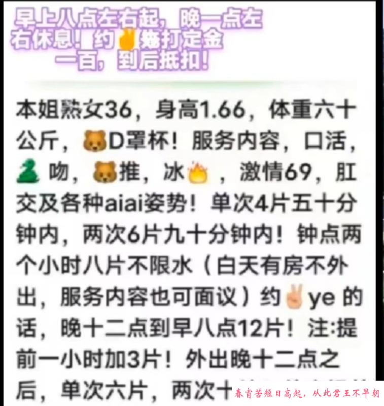 【特别注意】:凡是需要支付定金或路费的都是诈骗,再次提醒各位,一定不要先给钱!建议服务完后再给钱,或者谈好先给部分完事给剩下的。遇到还没服务就先给钱的,要千万小心被跑路和服务体验差,无数会员反馈谈好过夜却中途找借口跑路的情况!见面感觉不对劲就宁愿不玩,不然花了钱玩不开心得不偿失!